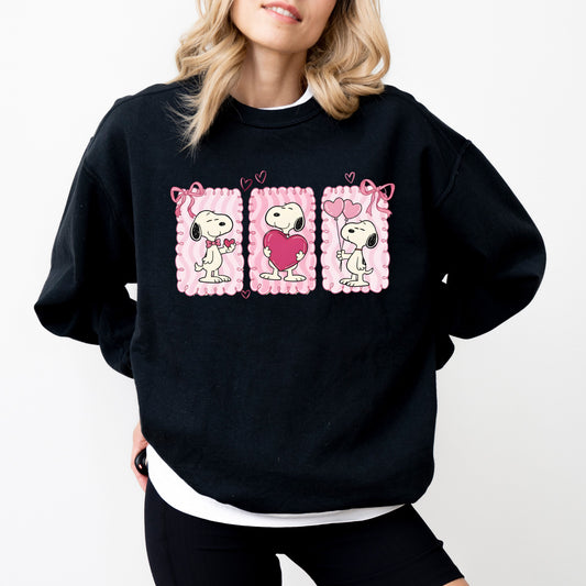 Peanuts Snoopy Valentine's Day Sweatshirt, Trio Heart Graphic Crewneck