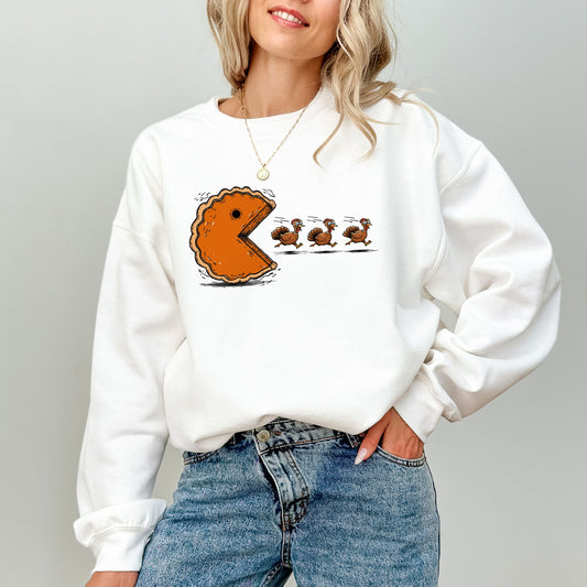 Funny Thanksgiving Pumpkin Pie Chasing Turkeys Sweatshirt