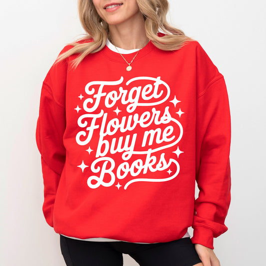 Forget Flowers Buy Me Books Sweatshirt, Book Lover Graphic Crewneck, Cozy Reader Gift
