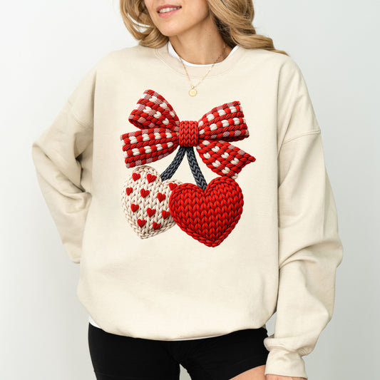 Faux Crochet Bow Sweatshirt, Valentine Cozy Graphic Crewneck, Love Inspired Sweatshirt