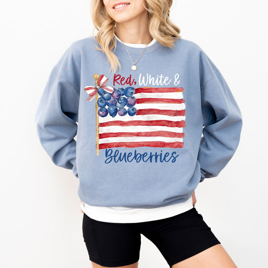 Red White and Blueberries Sweatshirt, Patriotic USA Flag Crewneck