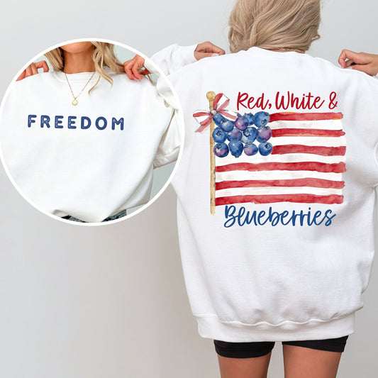 Red White and Blueberries Sweatshirt, Patriotic Freedom Crewneck, Gildan USA Flag Pullover