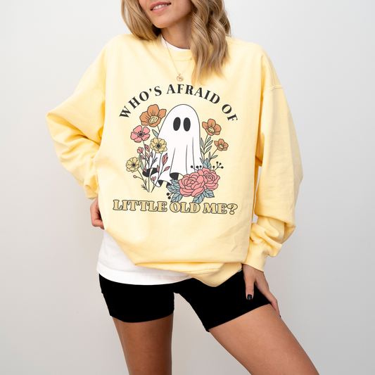 Who’s Afraid of Little Old Me Sweatshirt – Cute Ghost Halloween Crewneck