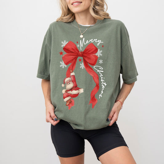 Comfort Colors® Merry Christmas Bow Santa Shirt — Vintage Holiday Tee