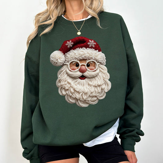 Faux Yarn Santa Sweatshirt – Cozy Christmas Graphic Pullover