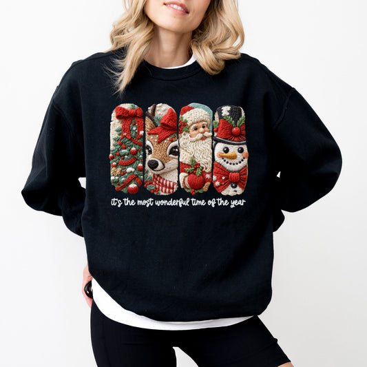 Faux Yarn Christmas Characters Sweatshirt – Cozy Holiday Graphic Pullover
