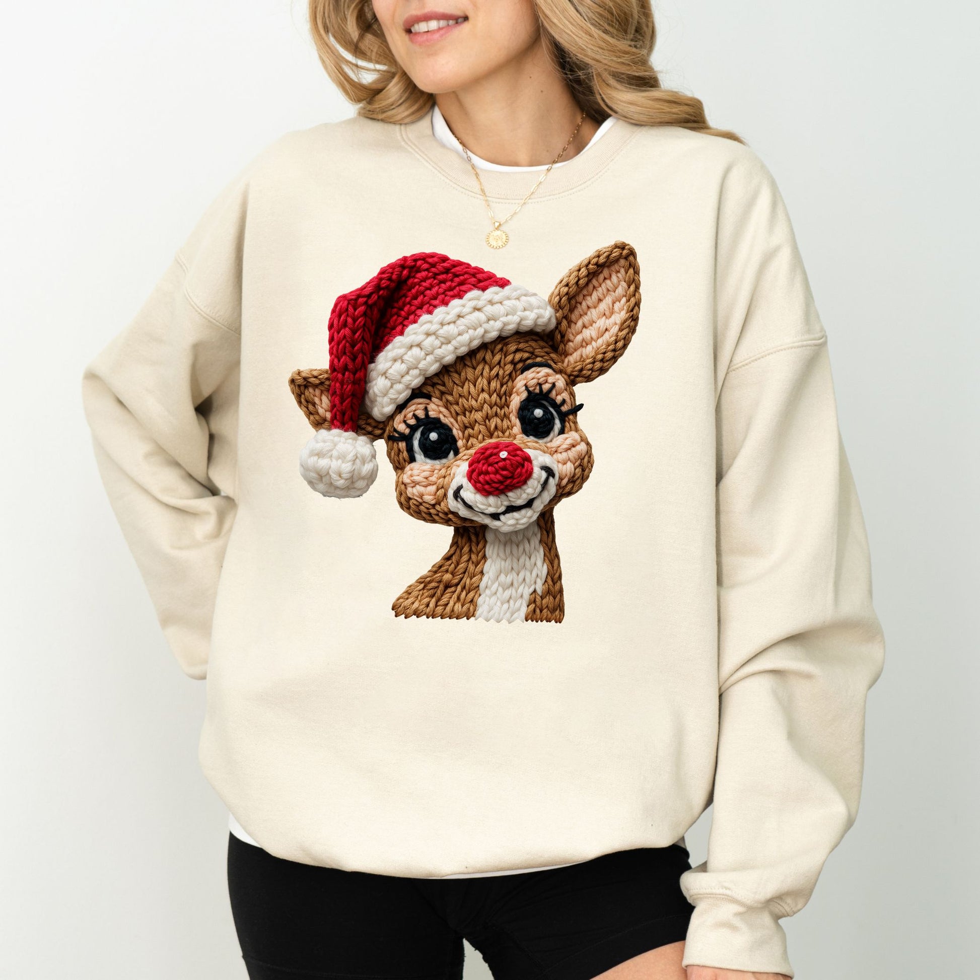 Faux Crochet Reindeer Christmas Sweatshirt – Cozy Holiday Pullover