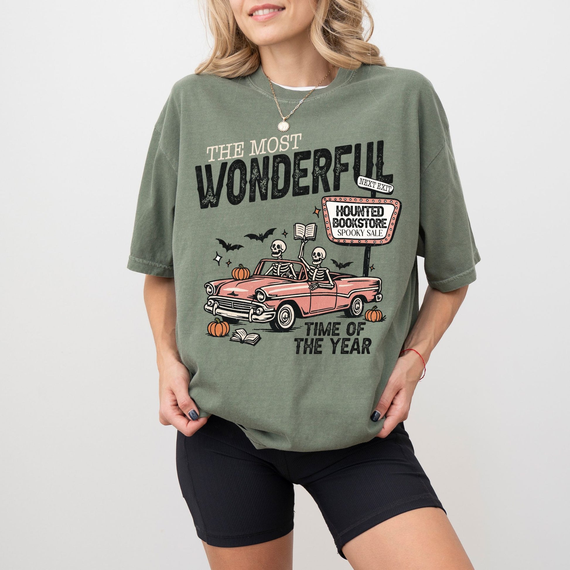 Haunted Bookstore Skeleton T-Shirt, Comfort Colors® Graphic Tee