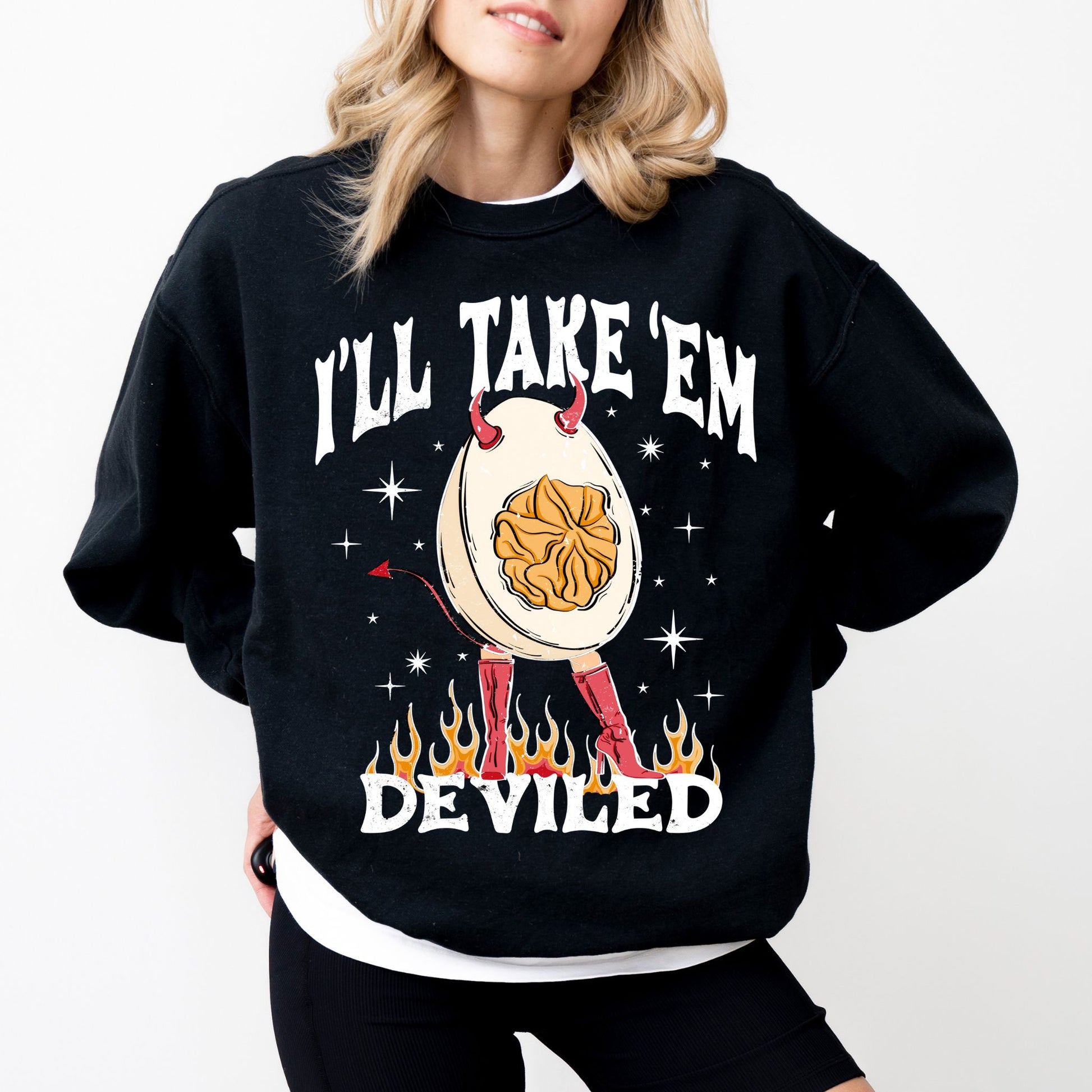I’ll Take ‘Em Deviled Sweatshirt, Funny Thanksgiving Egg Crewneck