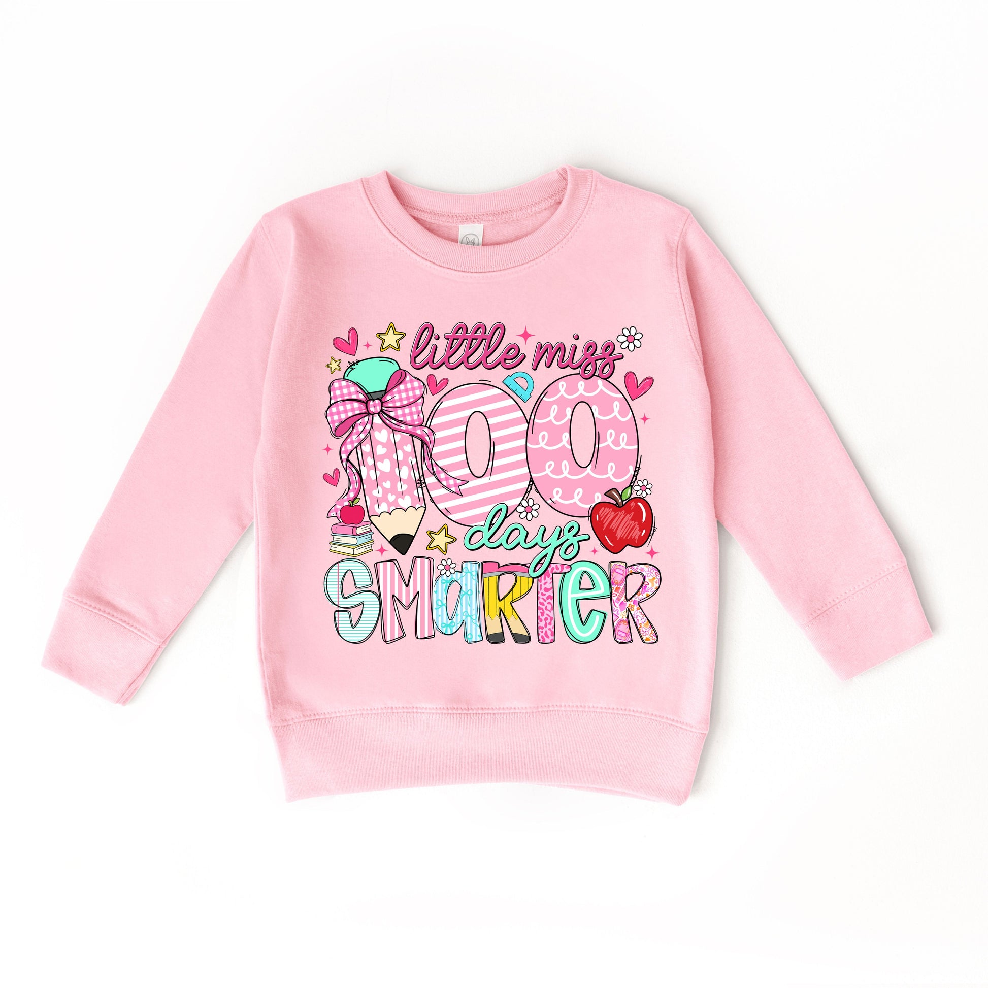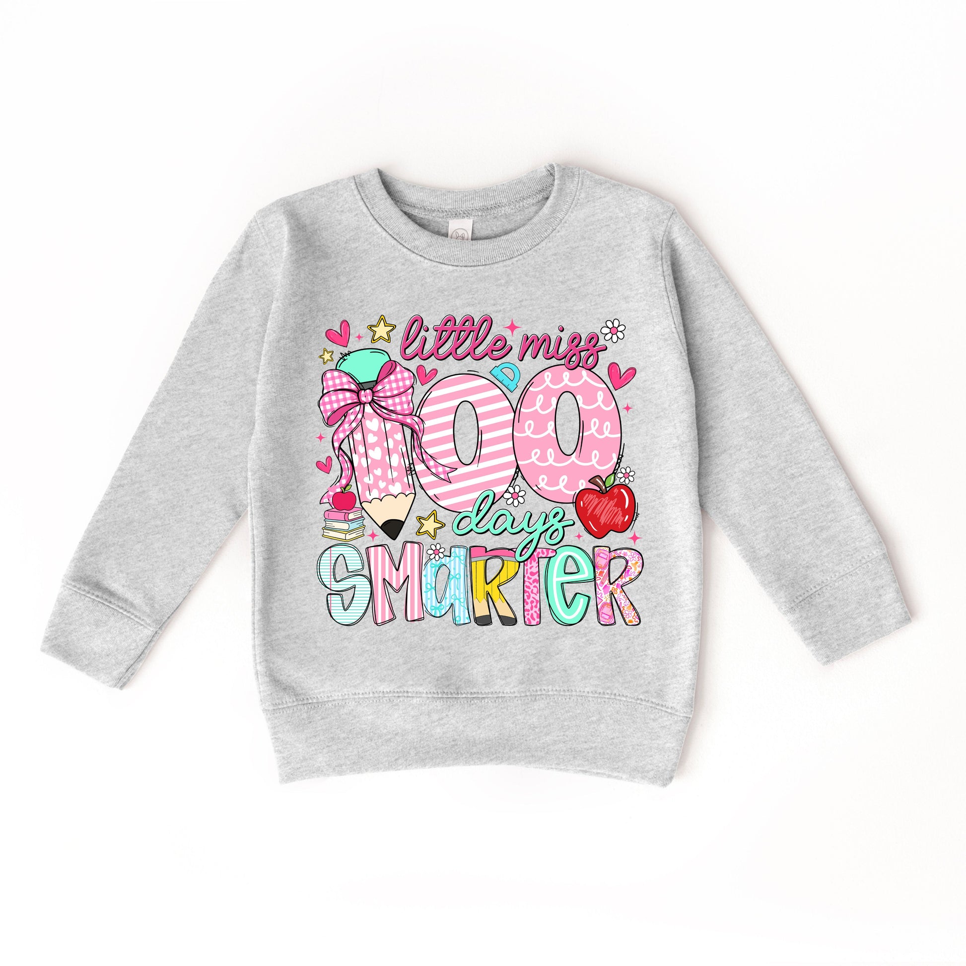 Little Miss 100 Days Smarter Sweatshirt, 100th Day of School Girls Crewneck, Cute Kids School Sweatshirt