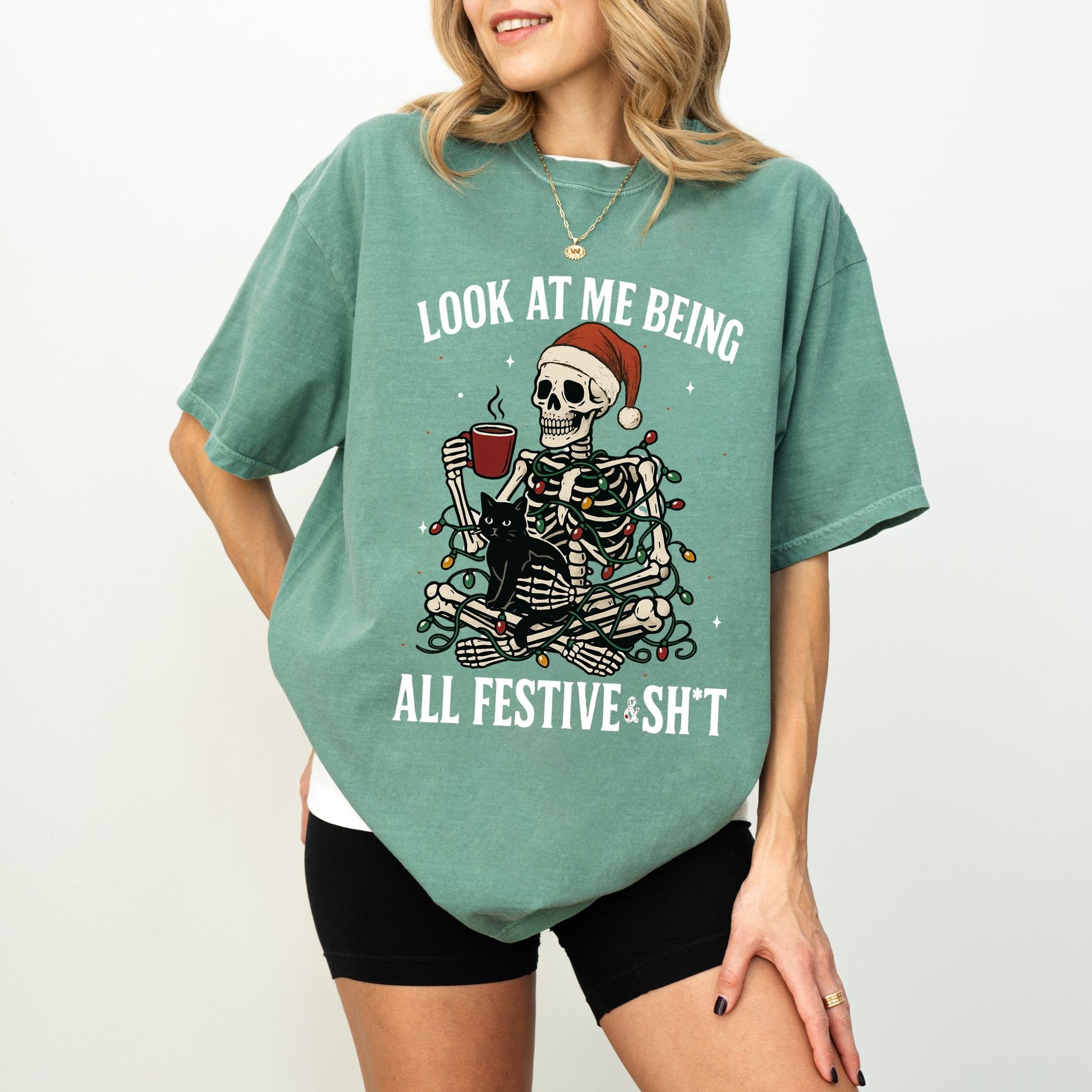 Look At Me Being All Festive & Sh*t T-Shirt – Comfort Colors® Christmas Skeleton Cat Tee